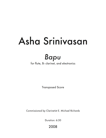 Bapu was commissioned in September 2008 by clarinetist E. Michael Richards. The piece has been released on Millenial Masters Vol. 3 by Ablaze Records.