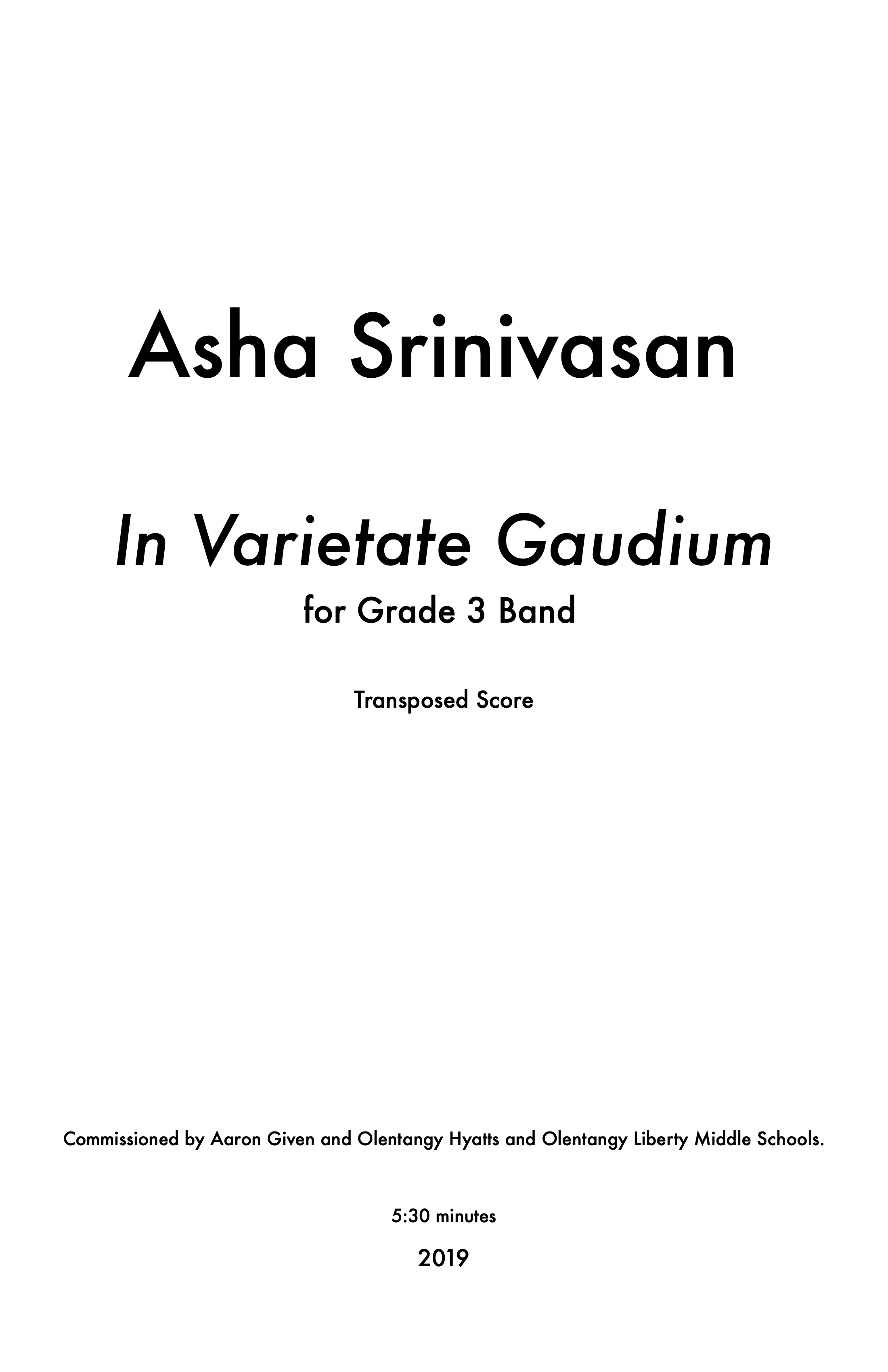 In Varietate Gaudium was commissioned by Aaron Given for the Olentangy Hyatts and Olentangy Liberty Middle Schools.