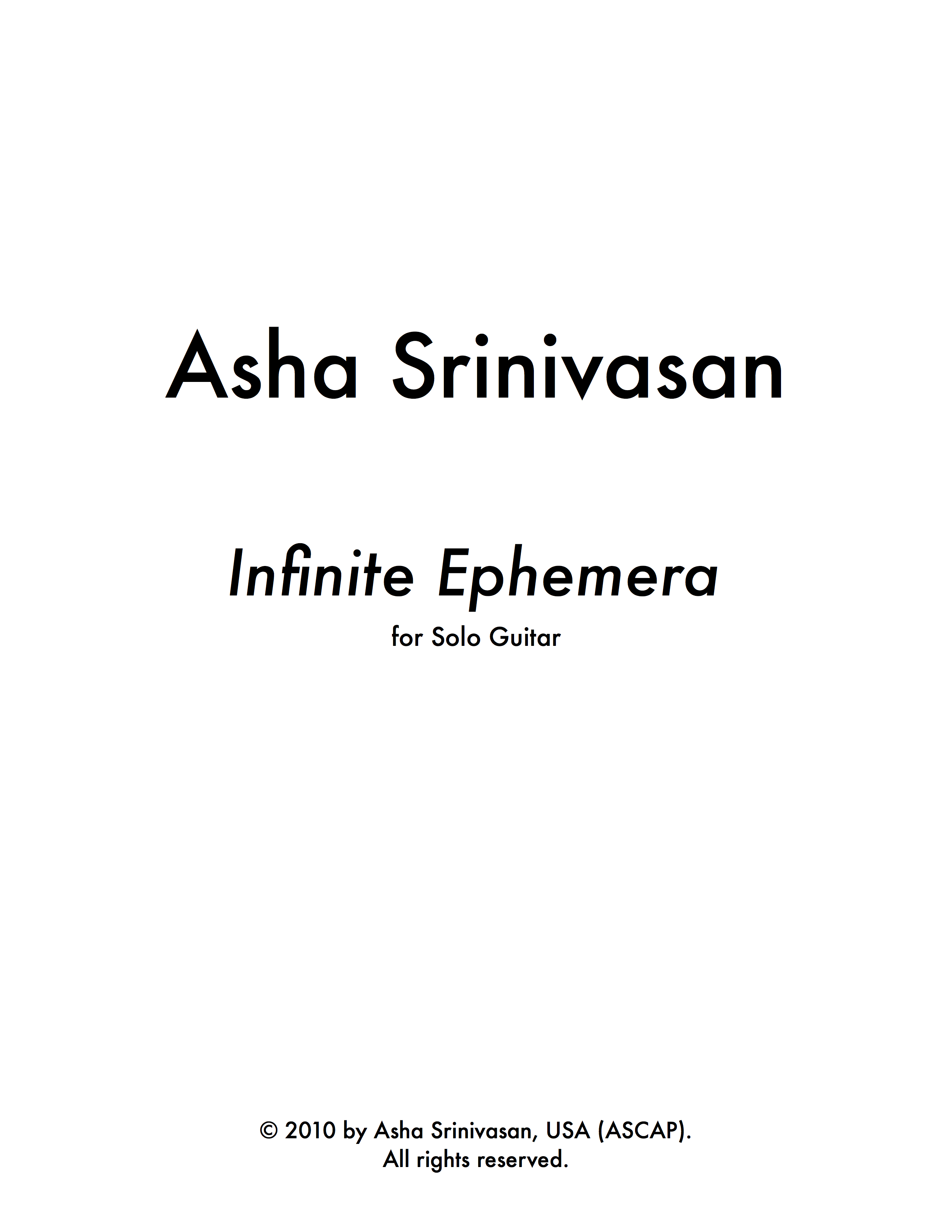 Time is but an infinite sequence of ephemeral moments that inevitably fade. I dedicate this piece to my husband from whom I had to live apart several years. Our surreal life of distance sharply focused my thoughts on the fleeting nature of time, which I wished to suspend when I was with my partner and which I wished to push forward when I was not. Though, all I could do is (im)patiently wait for the next brief ephemera of time together and agitatedly anticipate its obligatory passing. In the same way, this piece is caught between periods of uneasy calm and controlled urgency. The passive periods invoke the ringing nature of the instrument to suspend time, while the more active sections seem to wander endlessly. Neither is accomplished, of course, and the piece begins, proceeds, and ends as all pieces and all moments do.