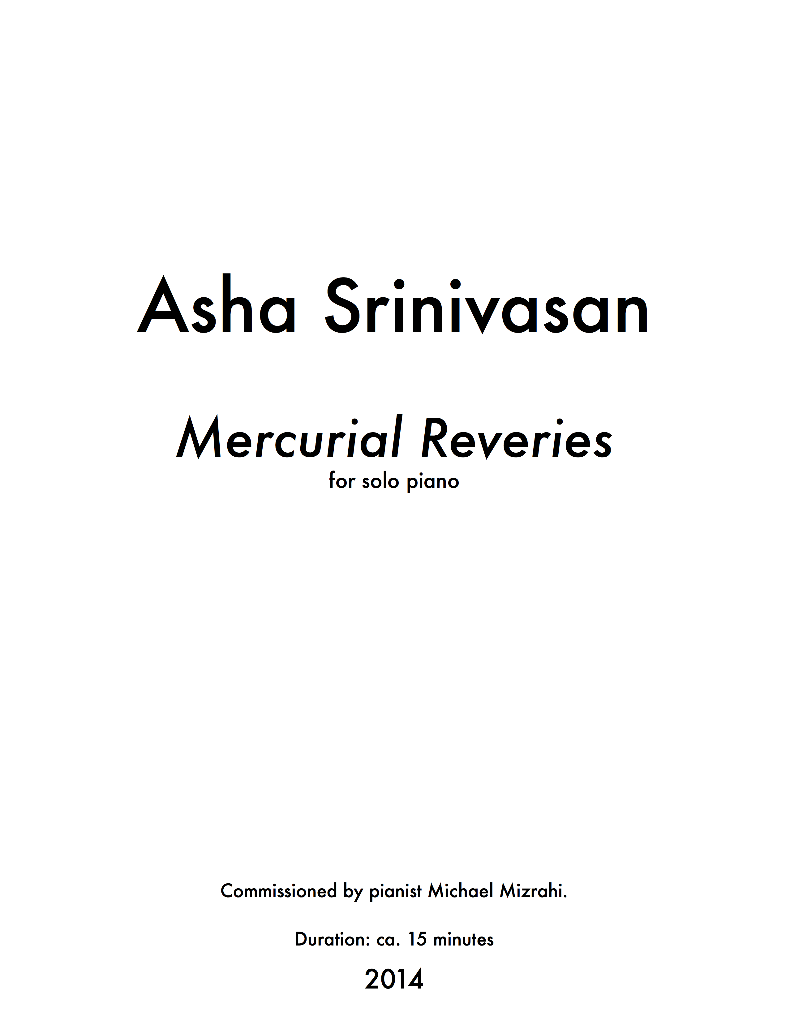 This work was commissioned by pianist Michael Mizrahi.