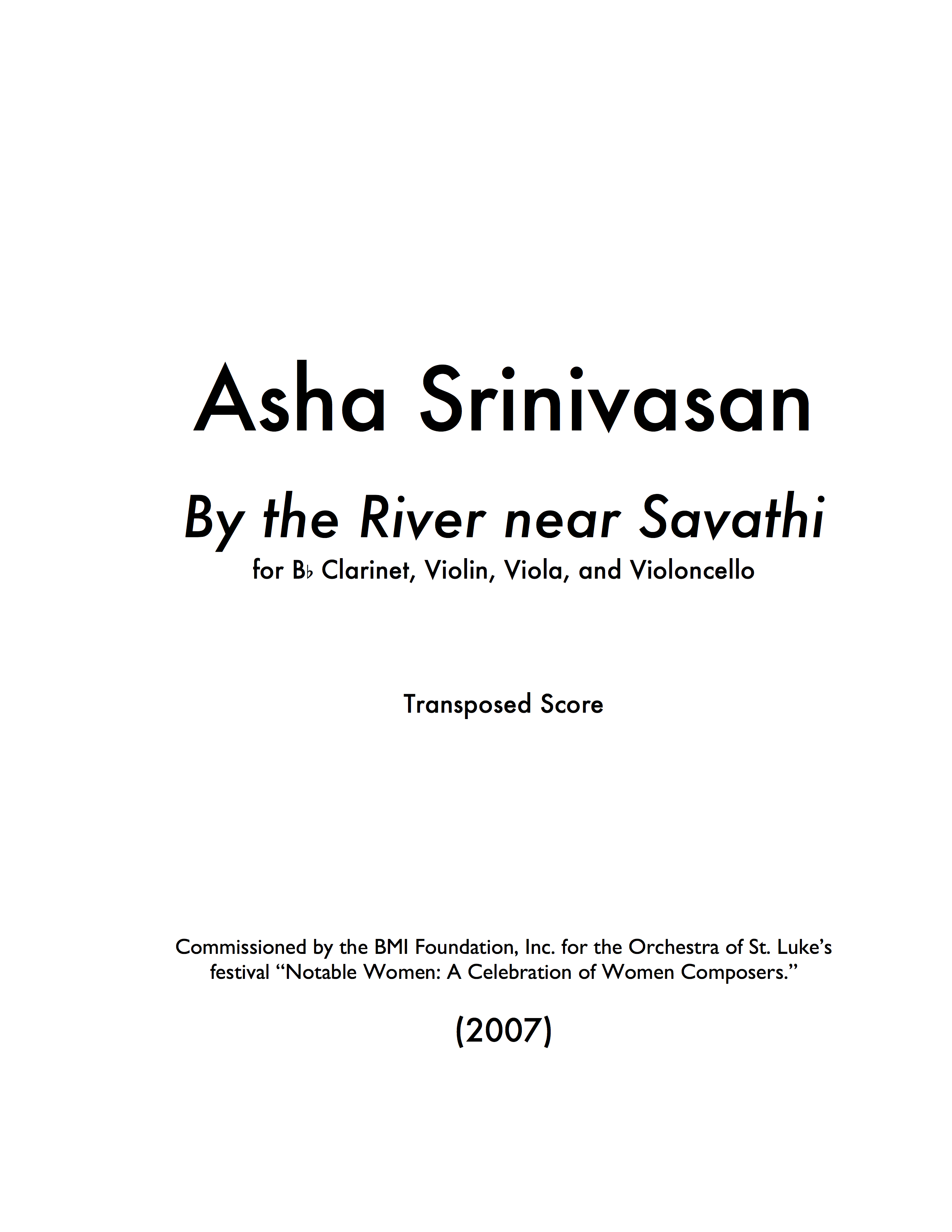 This piece was commissioned by the BMI Foundation, Inc. for the Orchestra of St. Luke's festival "Notable Women: A Celebration of Women Composers."