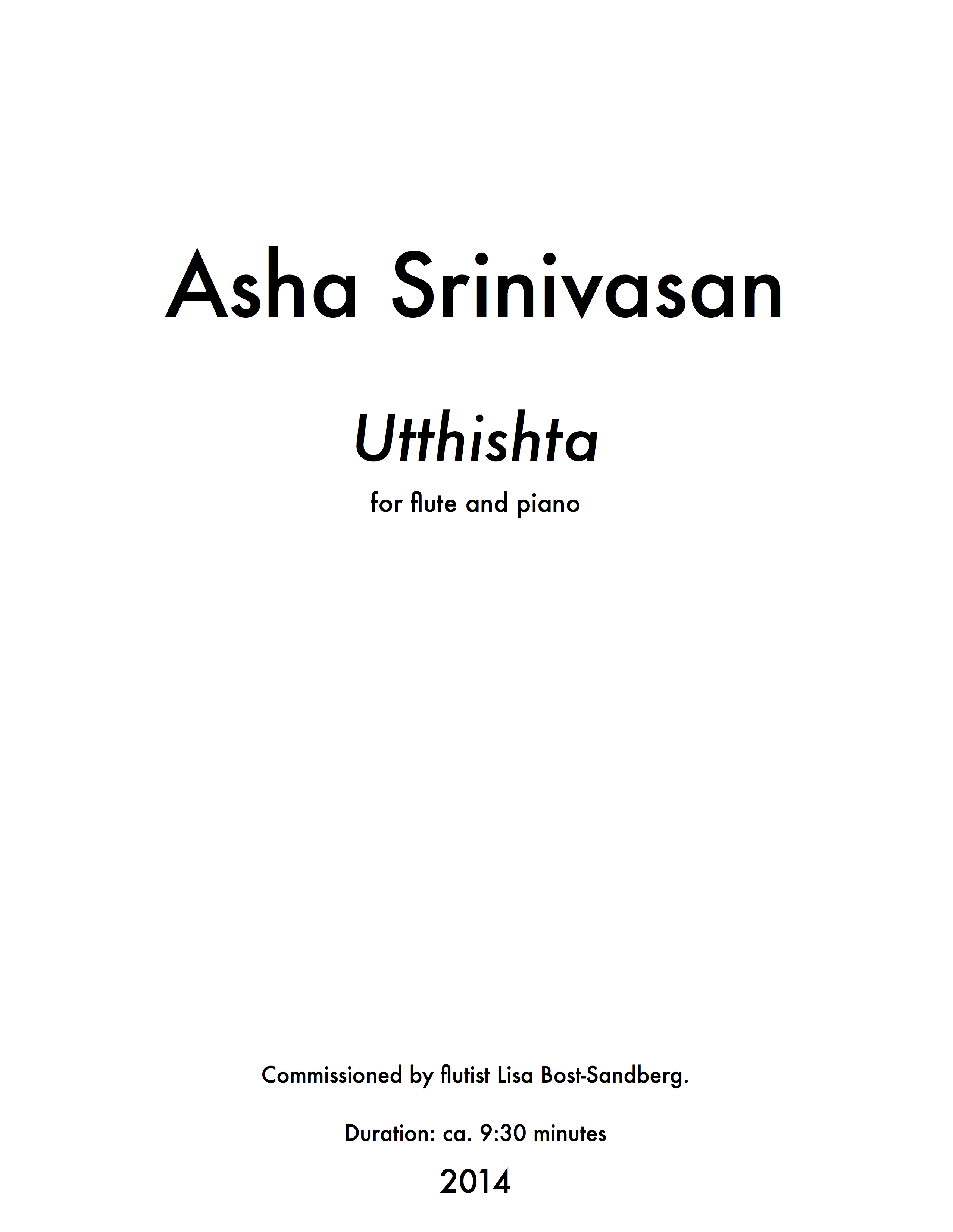 The title Utthishta means “arise” and is a reference to a famous Sanskrit poem called Suprabhatam. The piece draws on the lofty imagery presented at the opening of the poem which starts with a call to awaken the deity Venkatesh (Vishnu) so he may commence the day’s duties, which in his case is to bless and make auspicious the entire world. I used a transcription of the rhythmic and pitch patterns of the complex and strident Sanskrit language in the poem as resource material. The opening of the piece is reminiscent perhaps of dawn and dreaming but quickly moves to a more vigorous and relentless intensity.